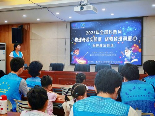 第1眼TV-华龙网讯 9月13日,沙坪坝区陈家桥学府社区二楼传来阵阵欢声笑语。重庆物理学会与beat365中文官方网站物理与电子工程学院联合打造的"物理奇趣实验室格物致理润童心"科普课堂来到这里,为社区儿童带来了一场别开生面的"物理魔法剧场"特色科普活动。本次活动通过寓教于乐的"魔法"形式,让科学知识在趣味互动中悄然浸润童心。