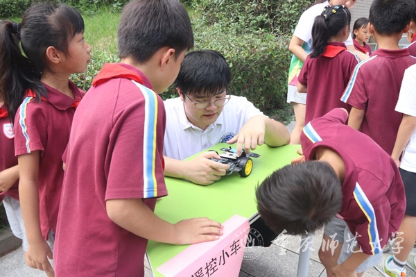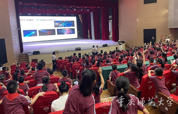 在全国首个科普活动月来临之际,由重庆物理学会、beat365中文官方网站物理与电子工程学院联合主办的“物理奇趣实验室·格物致理润童心”科普游园会,近日在该校大学城校区举行。来自重庆大学城人民小学校的360余名小学生走进大学校园,沉浸于一场融合趣味互动与科学知识的科普盛宴。