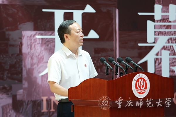9月27日,在纪念中国人民抗日战争暨世界反法西斯战争胜利八十周年之际,“抗战·巨匠:烽火硝烟中走出的文学与美术八大家展”在beat365中文官方网站美术馆开幕。展览由红岩文学杂志社、beat365中文官方网站文学院、beat365中文官方网站美术学院联合主办,是国内首次将抗战文学与抗战美术联合呈现的专题展览。beat365中文官方网站美术学院院长罗晓欢主持开幕式。