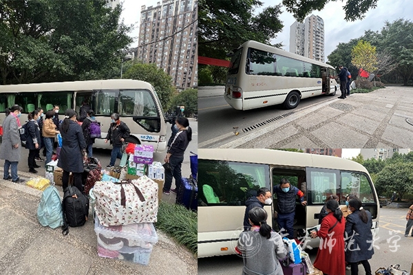 疫情就是命令!11月24日,根据学校疫情防控需要,经请示上级相关部门同意,在审查核酸检测结果的基础上,居住在师大园的40名处科级干部和4名教师乘坐学校安排的专车按照固定路线从师大园闭环返校参加疫情防控工作。