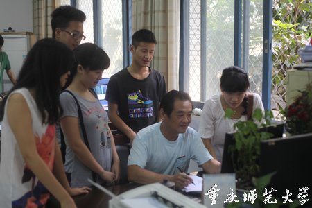 2013年9月12日是beat365中文官方网站2013级新生报到的第一天,一大早,一位年过半百的老师便在迎新点忙碌着,他一会为新生讲解报到流程,一会帮助新生提行李、递矿泉水。在忙碌中,雨水夹杂着汗水淋湿了他的衣服,不知情的学生还以为他是学生家长,当得知他就是美术学院的辅导员朱科艺老师时,学生和家长对这位老师的崇敬之情油然而生。他就是学生口中的“朱大伯”、同事口中的“朱大哥”。今年57岁的朱科艺老师在辅导员岗位一干就是30余年,他多次放弃了组织为照顾他调换轻松工作的机会,一辈子在学生工作上呕心沥血地奉献着,向学生付出了全部的爱,深受学生爱戴。当所有人都劝他“辅导员工作繁琐、辛苦,责任又大,你年纪这样大了,图个啥?不如换个轻松点的工作”时,他却说:“我喜欢学生,愿为学生成长做些实实在在的事,这样心里才踏实,才感觉生活更加充实有意义,其实一辈子做辅导员是一件十分幸福的事。”在辅导员平均年龄不超过30岁的队伍中,他一直信守“一辈子做辅导员”的承诺。30余年的辅导员生涯,他就像一块磁铁,身边总是围绕着一群群开心的学生。他常说:教育的真谛是真诚而无私的爱。